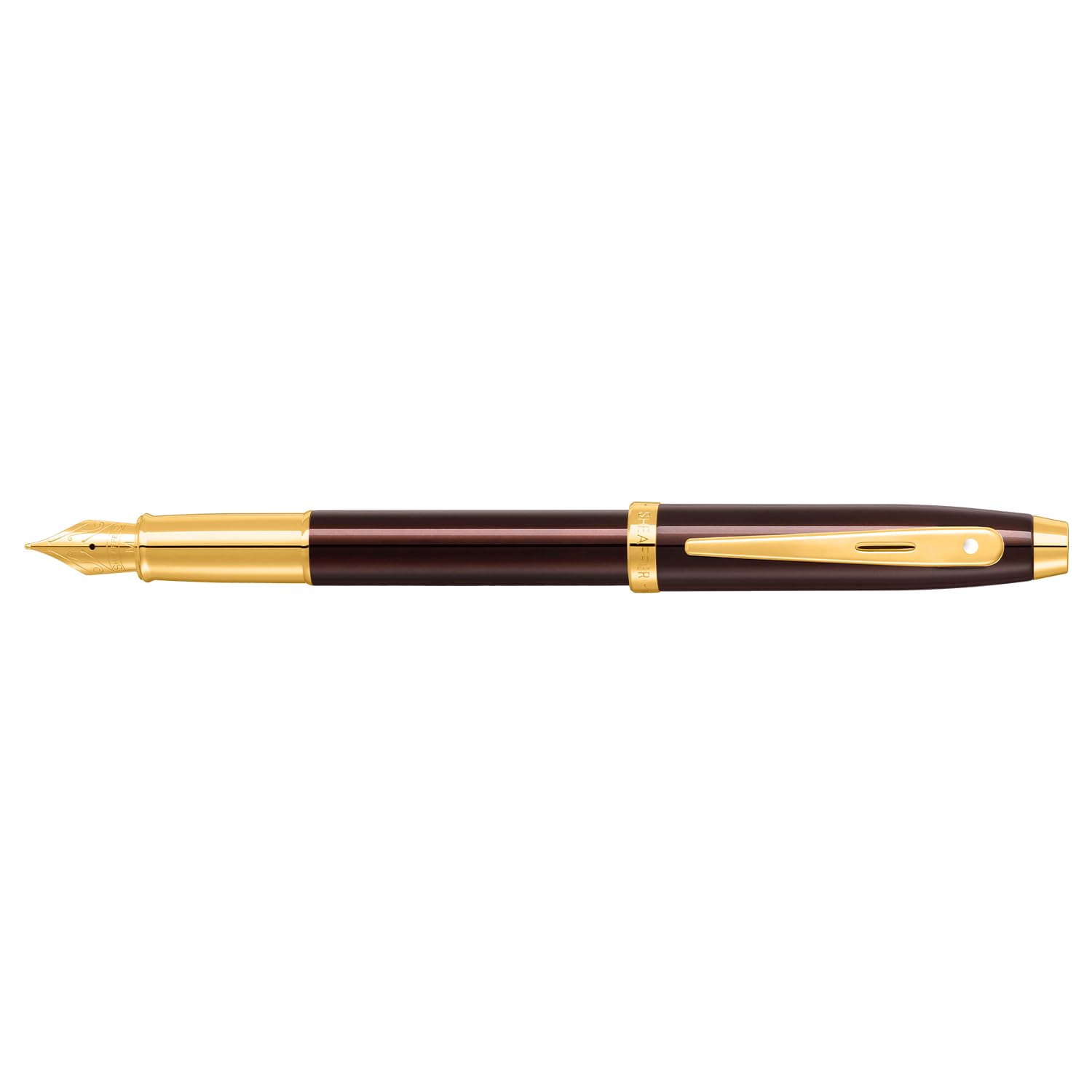 Sheaffer Gift 100 9370 Fountain Pen Glossy Coffee Brown with PVD Gold tone Trim | Fountain Pen Medium Nib | Premium Pen Gift Set